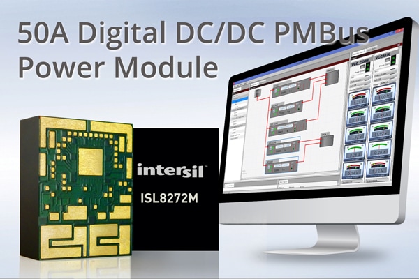 Smaller, more power, more functionality….it’s the name of the game in nearly all electronics applications these days, but the industrial power and infrastructure markets are particularly demanding when it comes to higher power density in less space. Intersil is targeting that market with the ISL8272M fully encapsulated digital DC/DC PMBus power module. The step-down power supply delivers up to 50A of output current from industry standard 5V or 12V input power rails. What should be of particular interest to the power infrastructure market is the ability to combine up to four 50A modules to support up to 200A rails.